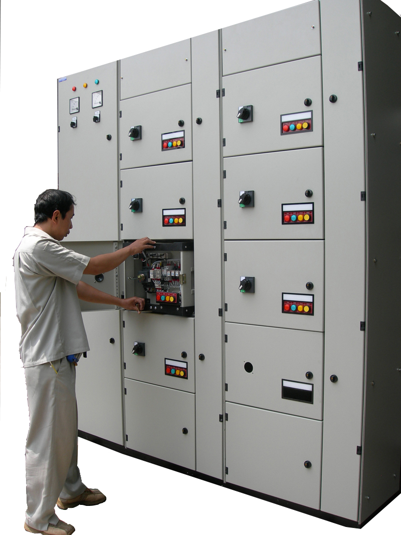 The meter is connected to a distribution panel, also known as the breaker panel. This apparatus has a main breaker, which can cut power to the entire house, and as many circuit breakers as there are circuits in the house.