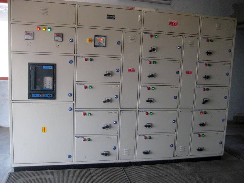 APFC Panel has microcontroller based programmable controller which switches the capacitor banks of suitable capacity automatically in multiple stages by directly reading the reactive load (RKVA) which works in the principle of VAR sensing tends to maintain the PF to 0.99 Lag. The capacitor banks may be selected in number of stages as 4/6/8 according to the load pattern.